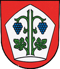 Autorem návrhů znaku a praporu, schválených rozhodnutím předsedy Poslanecké sněmovny Parlamentu ČR č. 23 z 29. 3. 1995, je Miroslav Pavlů. Ve znaku je v červeném štítě stříbrná mitra a na ní dva zelené stonky vinné révy, každý s jedním listem a jedním modrým hroznem.